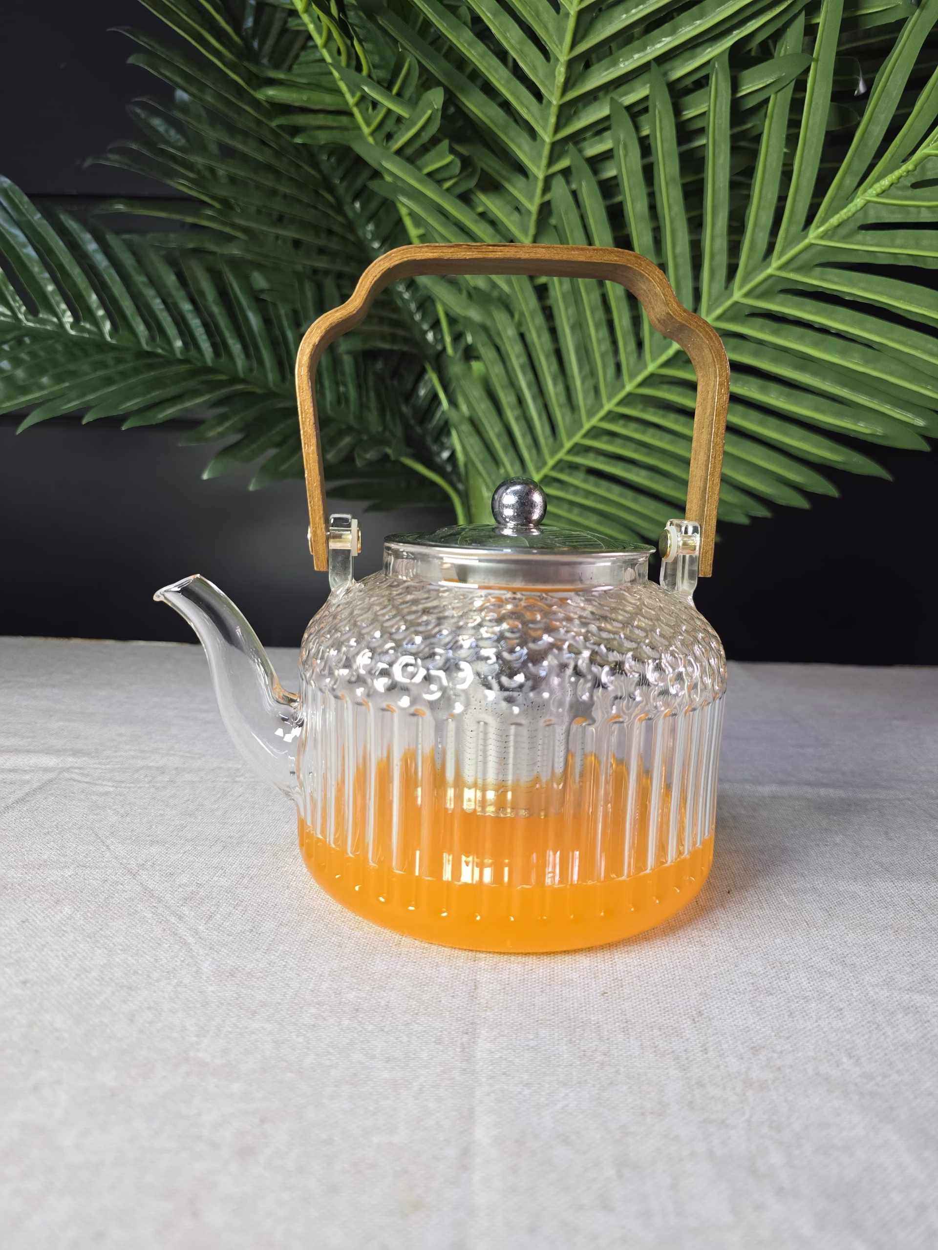 1.5 L BAMBOO HANDLE BOROSILICATE GLASS TEA POT