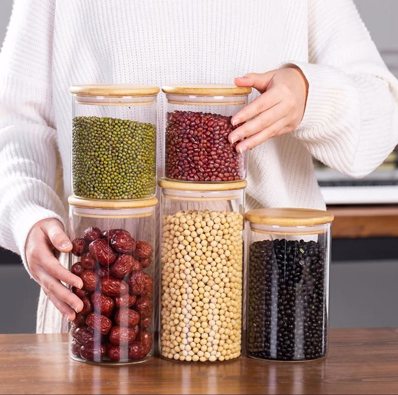 / ROUND BAMBOO LID JARS 1950ML